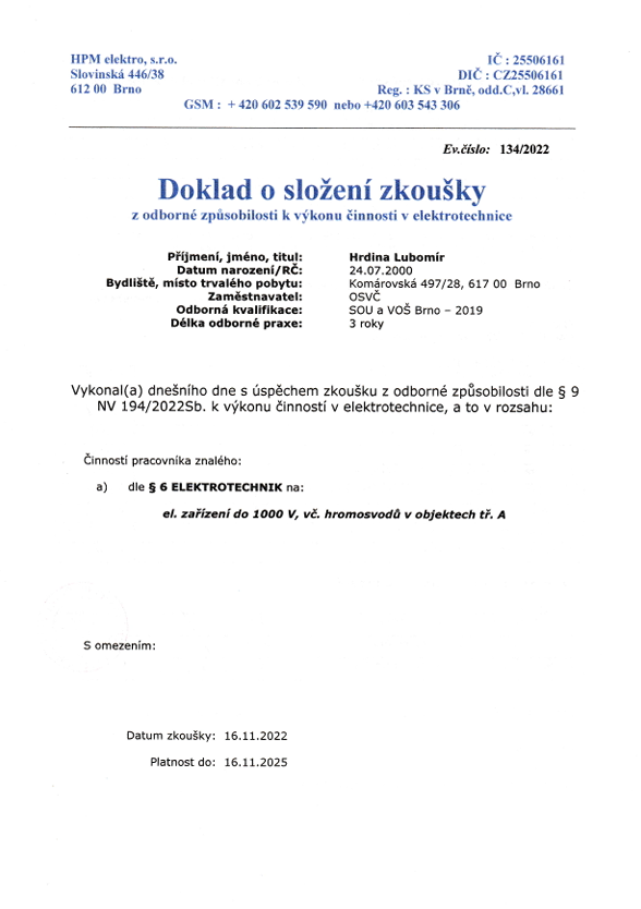 Dodržujeme platné normy a certifikace, abychom vám zajistili maximální bezpečnost a spolehlivost.